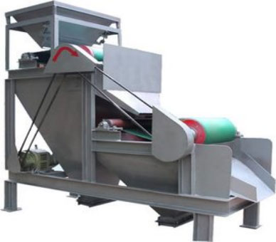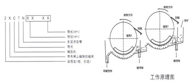 該類(lèi)設(shè)備利用永磁磁系所產(chǎn)生的磁力,將礦漿中磁性礦物吸引到圓筒表面上來(lái),并隨著圓筒一起旋轉(zhuǎn),待脫離磁場(chǎng)作用后在重力、(刮板)作用下排出機(jī)外,而非磁性物質(zhì)從尾礦口排除,完成分選作用。