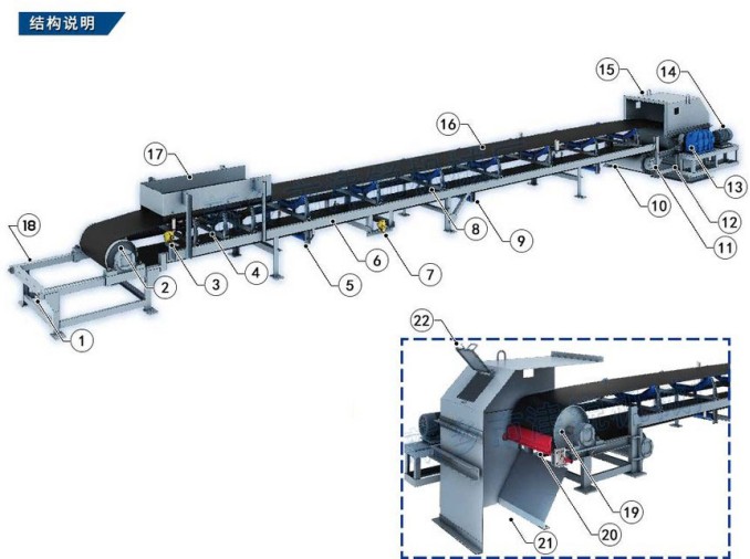 將物料經(jīng)由輸送皮帶送至后續(xù)工序或設備。